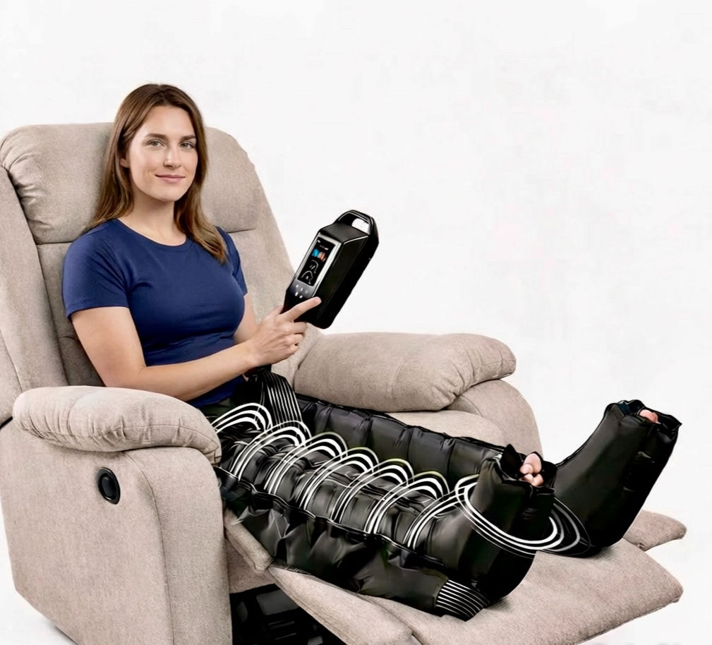 Revitalize tired legs with a soothing compression therapy that boosts circulation, reduces swelling.